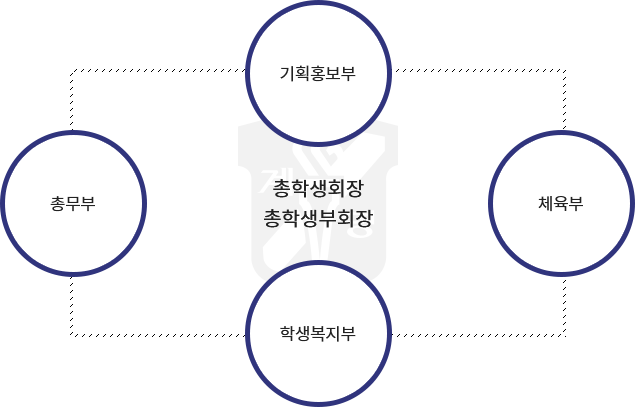 학생복지부 | 총학생회의 복지, 봉사활동, 학생의 학내외 활동 및 친목에 관한 업무를 담당한다. |